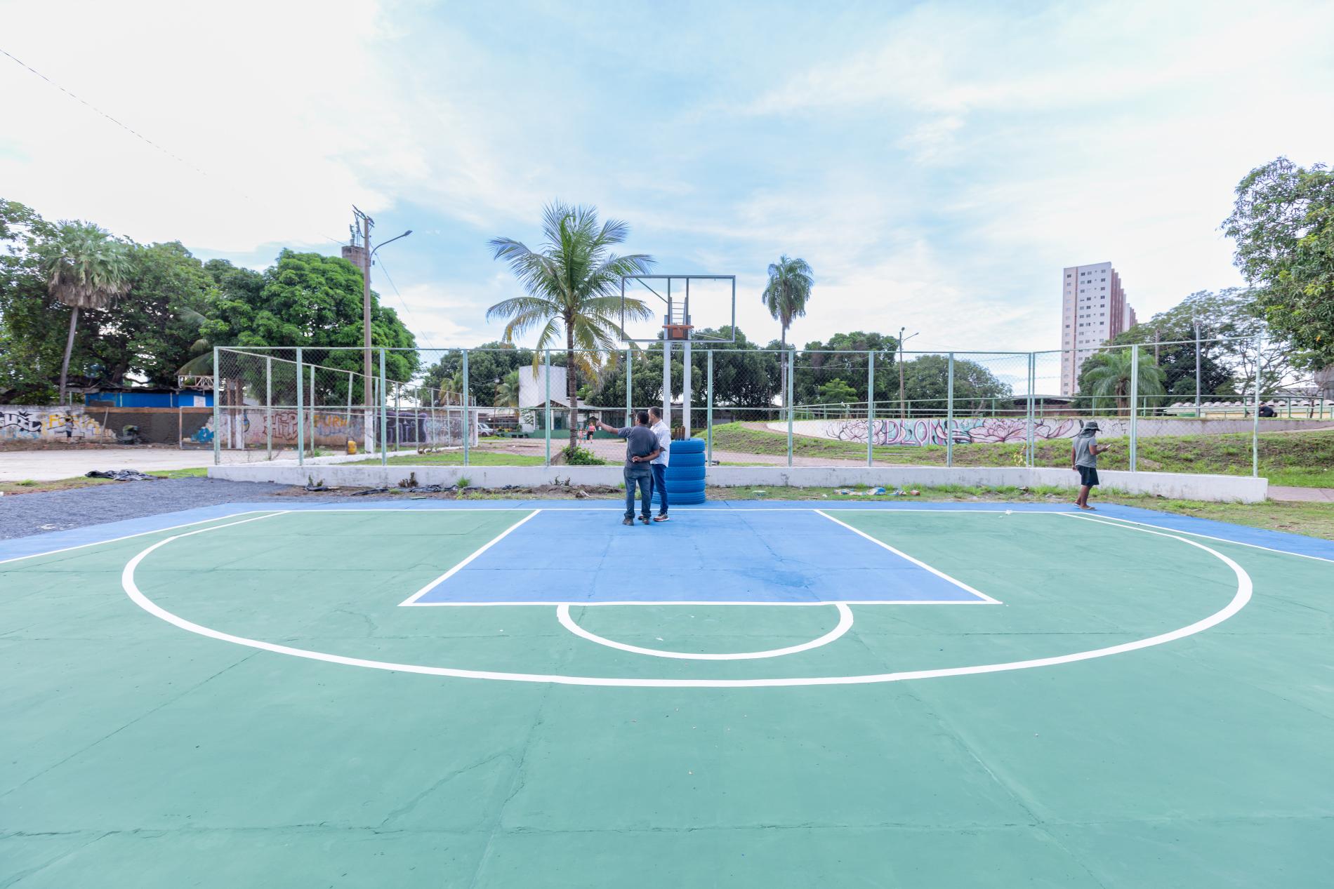 Os serviços incluem drenagem do piso, recuperação de fissuras, pintura completa, substituição de equipamentos esportivos e implantação de nova iluminação, um conjunto de melhorias que transforma não apenas a estrutura física, mas também a percepção de segurança e pertencimento da população.