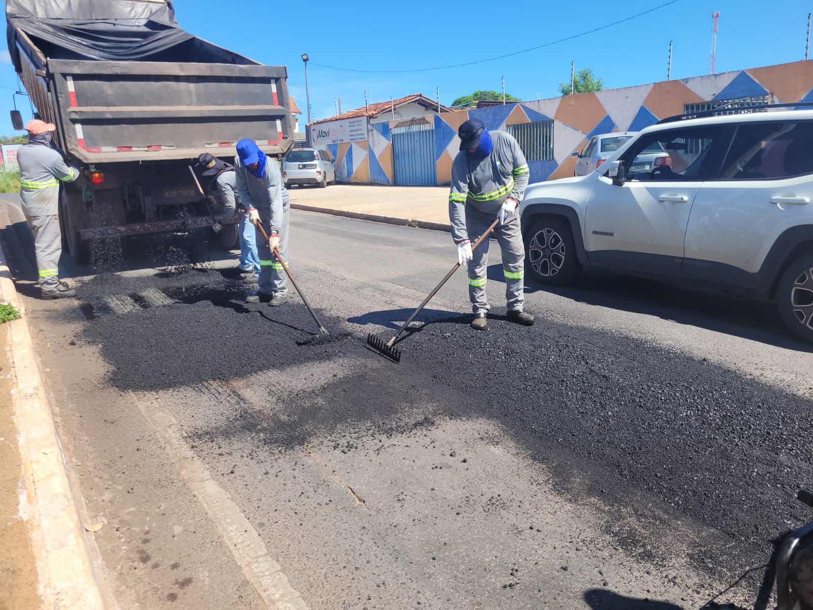 Outras duas equipes executam o tapa-buracos nos bairros Pedregal e Renascer, Jardim Mariana e na Av. General Melo, com início dos trabalhos atrás do Atacadão.
